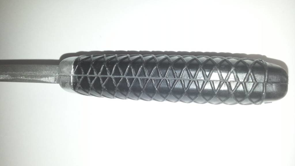 Het handvat van dit rubberen mes heeft een anti slip motief waardoor het rubberen mes stevig in de hand ligt. Het mes is 29Cm lang. Dit is een zachter oefenmes. Hiermee kan de jeugd oefenen zonder elkaar veel pijn te kunnen doen. Houdt ondanks dat altijd toezicht wanneer ermee geoefend wordt. Maar als u verder gevorderd bent en weet wat u doet, is dit een prima oefenmes. Zeer handig om al uw technieken tegen een mes te oefenen.